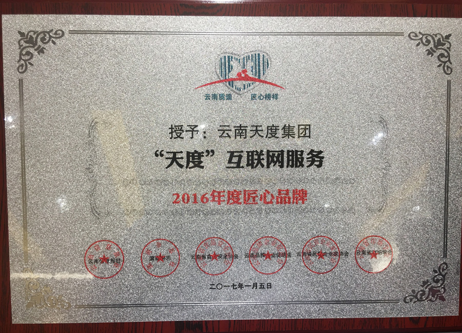 天度集團榮獲“2016云南匠心品牌”稱號