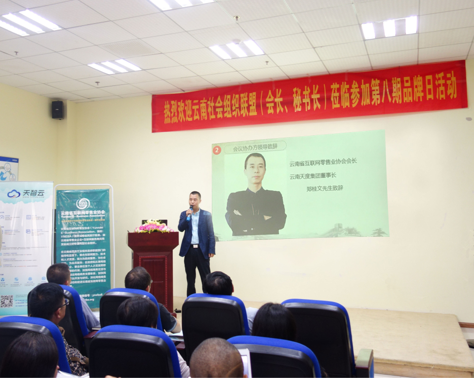 云南省互聯(lián)網(wǎng)零售協(xié)會(huì)會(huì)長、云南天度集團(tuán)董事長鄭桂文先生開場(chǎng)致辭