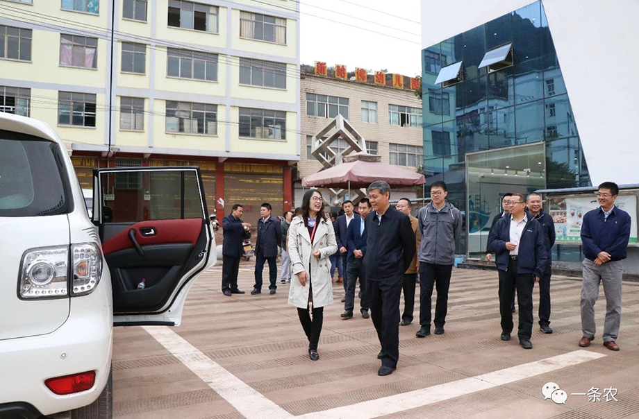 天度集團董事長鄭桂文、彝良天度電子商務有限公司總經(jīng)理陳玉鳳迎接董副書記等一行
