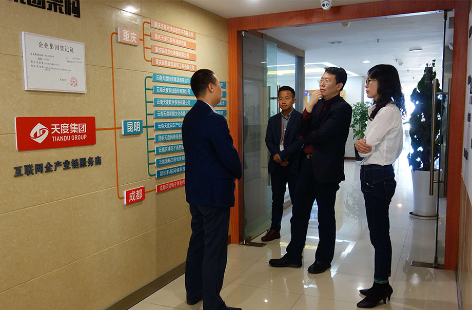 安寧市副市長孫凱蒞臨天度集團考察調(diào)研,天度集團楊副總經(jīng)理、云南天度大數(shù)據(jù)產(chǎn)業(yè)發(fā)展有限公司總經(jīng)理施錦明、云南天度軟件系統(tǒng)有限公司總經(jīng)理張羽昊與安寧市副市長進行了工作匯報和洽談