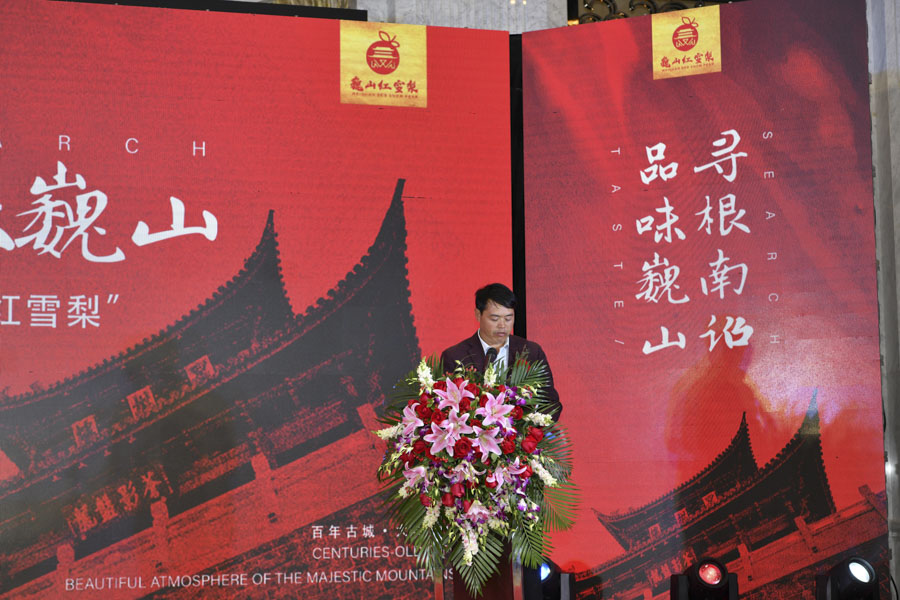 隨后,巍山縣人民政府王利偉縣長(zhǎng)、巍山縣農(nóng)業(yè)農(nóng)村局局長(zhǎng)沈看周,巍山縣馬鞍山鄉(xiāng)朝陽合作社陳文波社長(zhǎng)分別從巍山紅雪梨的產(chǎn)業(yè)政策,種植、生產(chǎn)、加工全過程,歷史沿革及價(jià)值等方面,全方位闡述了“巍山紅雪梨”的發(fā)展前景及品牌打造的價(jià)值和意義。