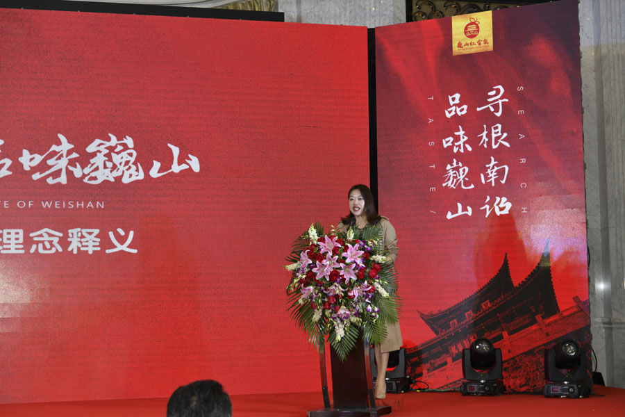 發(fā)布會(huì)上,云南蔚嵐信息技術(shù)有限公司副總周晶晶詳細(xì)闡述了區(qū)域公共品牌的創(chuàng)作過程,包含了品牌定位、設(shè)計(jì)理念、設(shè)計(jì)應(yīng)用、擬人形象等,并強(qiáng)調(diào)了此次發(fā)布會(huì)以品牌——“尋根南詔·品味巍山”為活動(dòng)主題的意義。從歷史、產(chǎn)地、種植和品質(zhì)等四個(gè)方面,總結(jié)突出了“巍山紅雪梨”的特性,同時(shí),也詮釋了“巍山紅雪梨”的區(qū)位優(yōu)勢(shì)、源產(chǎn)地優(yōu)勢(shì)、精細(xì)化的科學(xué)管理優(yōu)勢(shì)、產(chǎn)品品質(zhì)優(yōu)勢(shì)以及現(xiàn)有產(chǎn)業(yè)扶持政策優(yōu)勢(shì)等,從而體現(xiàn)了品牌價(jià)值和品牌發(fā)展戰(zhàn)略。