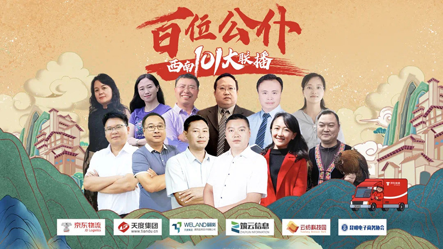 “百位公仆,西南101大聯(lián)播”大型助農(nóng)直播活動由京東物流主辦,天度集團-云南蔚嵐信息技術(shù)有限公司、云南筑云信息產(chǎn)業(yè)有限公司承辦,云南云紡科技產(chǎn)業(yè)園有限公司、昆明電子商務(wù)協(xié)會協(xié)辦。