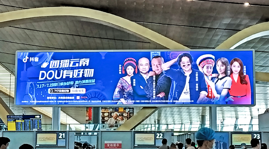 在活動(dòng)期間,昆明長水國際機(jī)場(chǎng)國內(nèi)國際出發(fā)到達(dá)機(jī)場(chǎng)入口戶外廣告、登機(jī)口、安檢口等共計(jì)86塊電子大屏廣告、昆明地鐵廣告、云紡科技園電子大屏和主要路口進(jìn)行了同步活動(dòng)預(yù)熱。