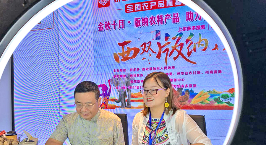 2020年10月11日,由拼多多、西雙版納傣族自治州人民政府、州扶貧辦、州文化和旅游局、州農村農業(yè)局、州商務局、州電子商務公共服務中心聯(lián)合舉辦的助農直播活動在州電子商務公共服務中心舉行。