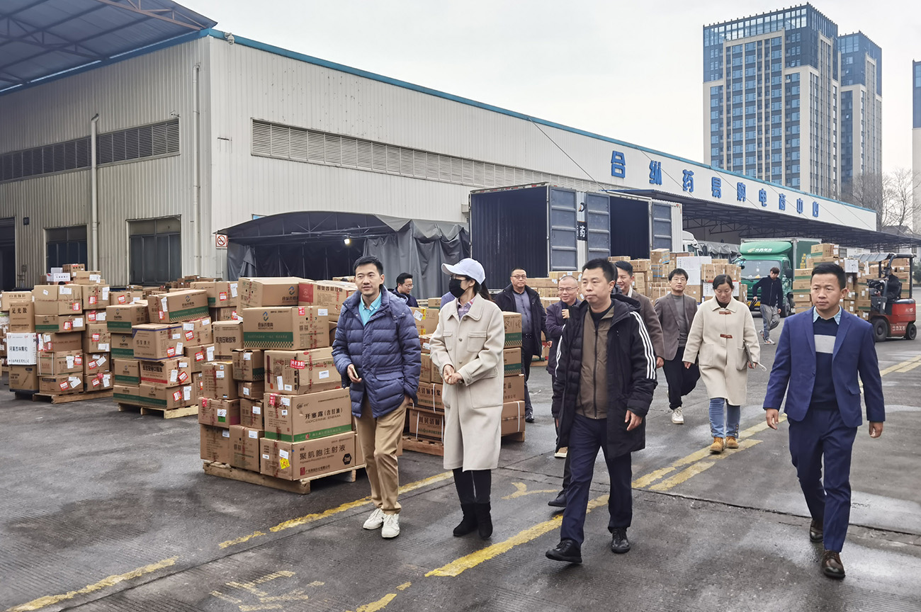 14日下午,考察團(tuán)到達(dá)此次考察交流的第一站,四川合縱藥易購醫(yī)藥股份有限公司電商基地,受到了四川合縱藥易購醫(yī)藥股份有限公司董事、高級副總裁李宇欣帶領(lǐng)的相關(guān)管理團(tuán)隊(duì)的熱情接待。四川合縱藥易購醫(yī)藥股份有限公司是中國首家醫(yī)藥產(chǎn)業(yè)互聯(lián)網(wǎng)上市企業(yè),是一家數(shù)智醫(yī)藥大健康生態(tài)型企業(yè)。業(yè)務(wù)涵蓋醫(yī)藥新零售、醫(yī)藥B2B電商、數(shù)字化賦能、醫(yī)藥批發(fā)、醫(yī)藥公共服務(wù)、醫(yī)藥供應(yīng)鏈、智能物流、C端矩陣、互聯(lián)網(wǎng)醫(yī)療、醫(yī)藥健康金融、大健康管理等眾多板塊。為全產(chǎn)業(yè)鏈合作企業(yè)提供優(yōu)質(zhì)產(chǎn)品、先進(jìn)平臺、豐富資源、創(chuàng)新技術(shù)與完善服務(wù),助力生態(tài)伙伴加速增長與永續(xù)發(fā)展,共同構(gòu)建數(shù)智醫(yī)藥大健康產(chǎn)業(yè)鏈新生態(tài)。