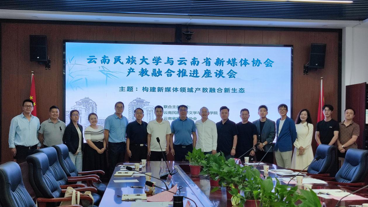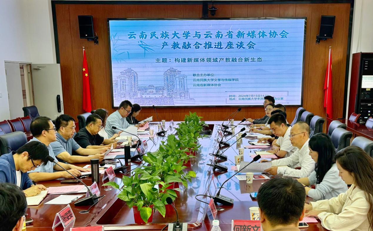 文學(xué)與傳媒學(xué)院副院長陳順堯、許麗華,學(xué)校教務(wù)處教學(xué)研究科科長張勝婷,學(xué)院新聞系主任張雯雯等與會人員圍繞如何進(jìn)一步深化校企合作和產(chǎn)教融合,完善人才培養(yǎng)模式,新媒體賦能云南經(jīng)濟社會發(fā)展、推動大學(xué)生實踐實訓(xùn)與就業(yè)創(chuàng)業(yè)等內(nèi)容踴躍發(fā)言。大家一致認(rèn)為,云南省新媒體協(xié)會與云南民族大學(xué)聯(lián)合相關(guān)高校、企業(yè)啟動“產(chǎn)教融合共同體”創(chuàng)建工作,并同步推動成立“高校專委會”,建設(shè)開放型公共實踐實訓(xùn)基地,不僅滿足社會對創(chuàng)新型高質(zhì)量人才的需求,對推進(jìn)高校教學(xué)改革、提升技術(shù)技能人才培養(yǎng)質(zhì)量,促進(jìn)全省新媒體領(lǐng)域的教育與產(chǎn)業(yè)協(xié)同發(fā)展也具有重要意義。