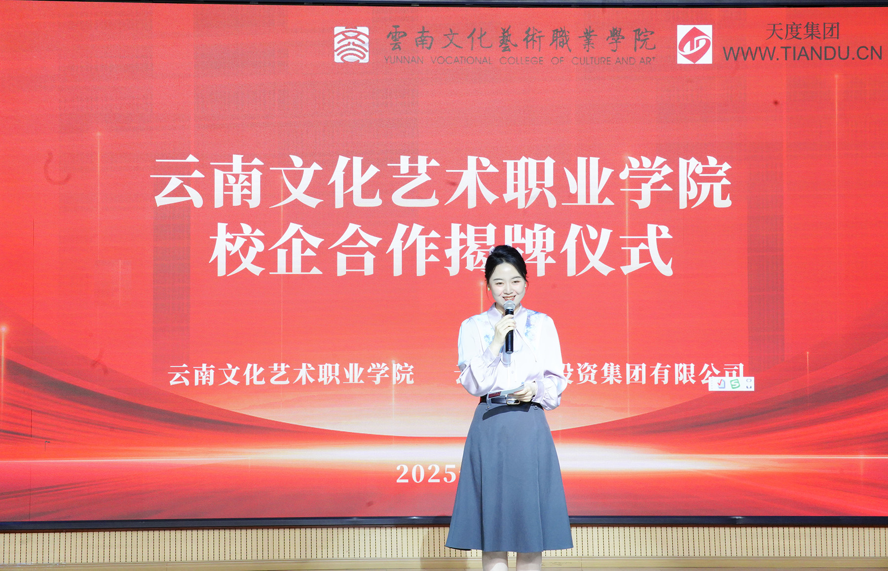 4月28日,云南文化藝術(shù)職業(yè)學(xué)院與云南天度集團校企合作揭牌儀式在云南文化藝術(shù)職業(yè)學(xué)院音樂廳隆重舉行。雙方將聚焦融媒體技術(shù)與運營、人工智能技術(shù)應(yīng)用、軟件技術(shù)等相關(guān)專業(yè),通過“共建共管”模式深化產(chǎn)教融合,共同培養(yǎng)數(shù)字經(jīng)濟領(lǐng)域高素質(zhì)技術(shù)技能型人才,為區(qū)域數(shù)字經(jīng)濟、文旅融合等重點產(chǎn)業(yè)發(fā)展提供人才賦能。