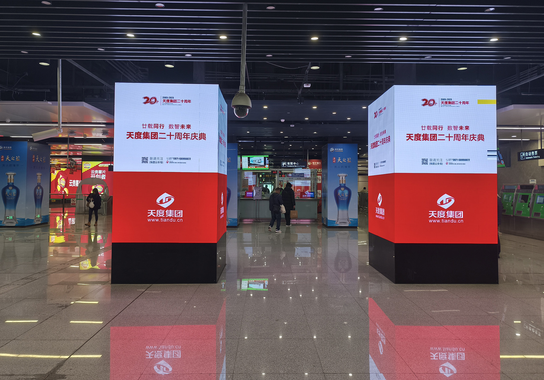 慶典啟幕前,天度集團(tuán)20周年慶典宣傳已點亮昆明全城。從市中心到各區(qū)域地標(biāo),再到昆明地鐵廣告,十余塊LED大屏同步綻放,將慶典的喜悅傳遞到城市的每個角落,讓所有關(guān)心支持天度的朋友們共同見證這一重要時刻。